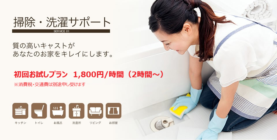 女性の社会進出や高齢化社会を背景に、家族での家事負担、育児負担、介護負担を少しでも軽減できるように質の高いキャストがお客さまをサポートします。